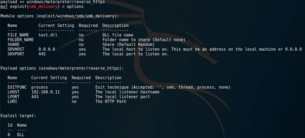 Finally, issue the ‘exploit’ command to begin staging the attack: