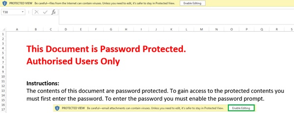 Note: In order to utilise auto-execution via the ‘Workbook_Open()’ function, the weaponised MS Excel document needed to be downgraded to Office 98 – 2003 compatibility (.xls)