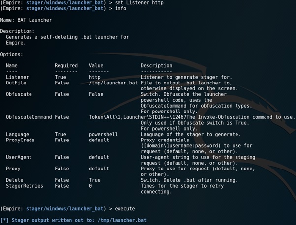(Empire: stager/windows/launcher_bat) > set Listener http