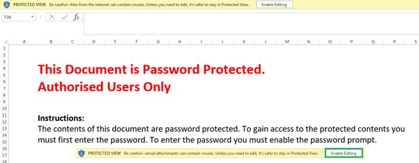 Note: In order to utilise auto-execution via the ‘Workbook_Open()’ function, the weaponised MS Excel document needed to be downgraded to Office 98 – 2003 compatibility (.xls)