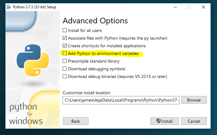 Figure 1: When installing Python ensure you tick the box which says “Add Python to environment variables”