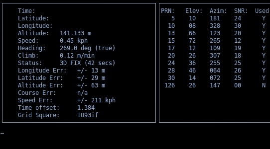 To check whether your GPS receiver has locked onto satellites we can use cpsg which is used to test clients for gpsd, run the following command in a new tab or terminal window