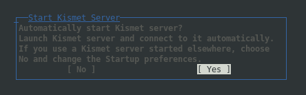 You will be asked a few questions when launching kismet which are pretty straight forward.