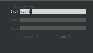 You can either change these or leave them as default. Next you will see a console window which you can close. You will then be asked to add a source which will be the name of your Wireless Device in my case it was wlan1